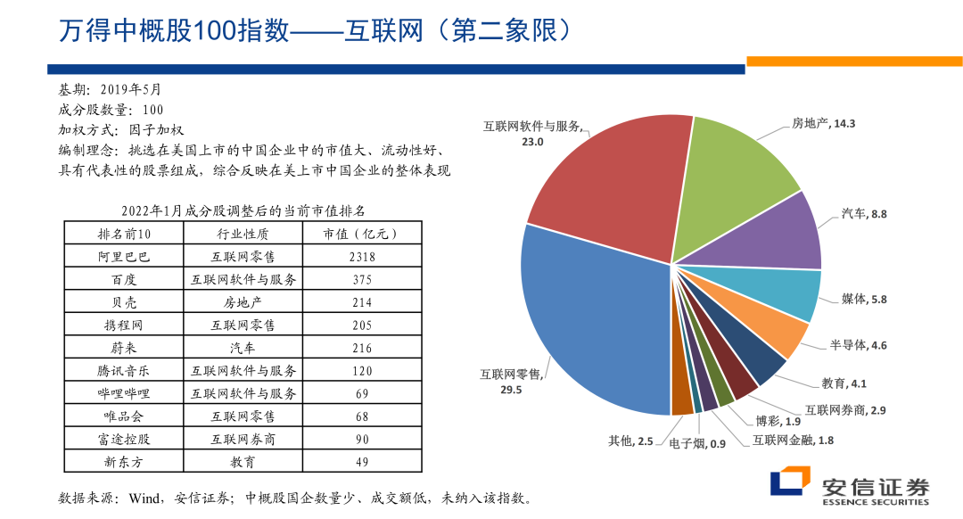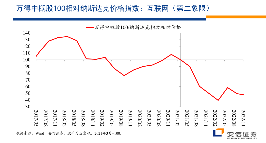那么另外一个的话我们进入第二象限,第二象限我们想了一段时间的话,我们觉得这个非常典型的话,我们找的一个指数的话是万德中概股100指数的中概股,100指数里边的大头的话是互联网。当然除了互联网还有很多别的企业,但是大头是互联网。