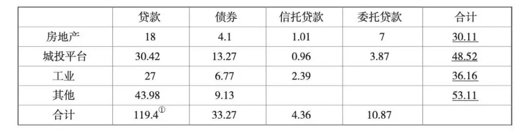 委托贷款缺乏更细致的公开数据。根据调研情况,这部分贷款主要投向房地产行业和城投平台,且以房地产为主,因此考虑这部分贷款在房地产和城投平台的规模分别为7万亿元和3.87万亿元的同时,由于房地产行业和城投平台公司在后文分析中的行为模式一致,加之这部分贷款规模并不大,此处的划分不会对后文的分析造成实质性影响。