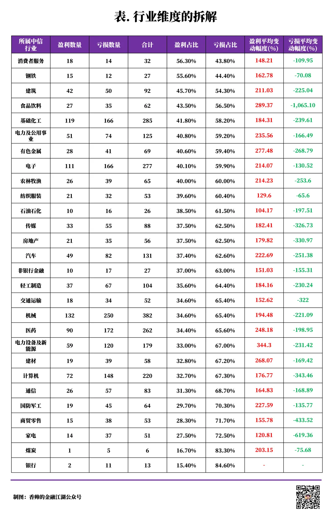 部分行业显示出极致的盈亏分化。比如食品饮料行业就是一个极具戏剧性的缩影。一方面,部分企业享受着高达289%的平均盈利增长;另一方面,另一些企业则坠入-1065%的亏损深渊——这种极致的分化指向行业内部残酷的洗牌与价值链重构。与之相对,纺织服装、钢铁、煤炭等传统行业的亏损则显得“温和”,说明其行业格局相对稳定,或已处于下行周期的尾声。