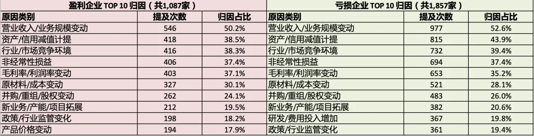 表. 盈利/亏损归因文本分析