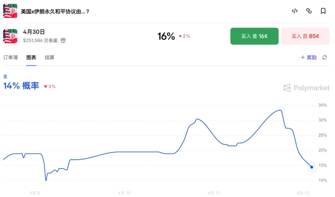 对投资者而言,消息市的残酷之处在于:你接收到信息的那一刻,定价已经完成。一条推文让原油暴跌20%,另一条声明又把它拉回来——而这两条消息之间可能只隔几个小时。Polymarket上美伊和平协议的概率像心电图一样剧烈跳动,坐上一张谈判桌给了30%概率,不欢而散概率骤降至10%附近,本身就是极端不确定性的实时心电图。你以为自己在做决策,其实只是在追逐噪音的尾巴。